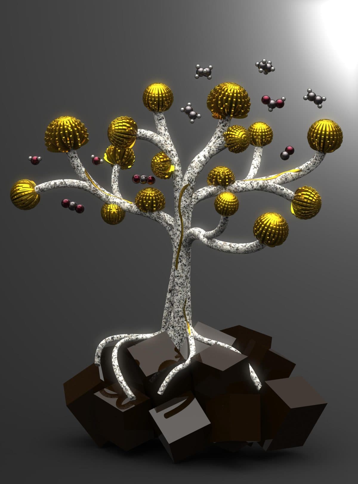 وتمكن باحثون من جامعة كامبريدج وجامعة كاليفورنيا بيركلي من تطوير طريقة يمكن بها تحضير الهيدروكربونيات باستخدام ضوء الشمس فقط. وتتكون ورقة الشجرة الجديدة من تشكيل هندسي على شكل زهرة مصنعة من معدن النحاس. وتكون تلك الزهرات النحاسية متناهية الصغر، في مدي النانومتر، نانومتر تعني جزءًا من مليار جزء من المتر. ويتم دمج الزهرات مع “ورقة” ماصة للضوء مصنوعة من البيروفسكايت، وهي مادة عالية الكفاءة تستخدم في الخلايا الشمسية. حيث يعمل النحاس كمحفز لتكوين الهيدروكربونات في وجود ضوء الشمس.