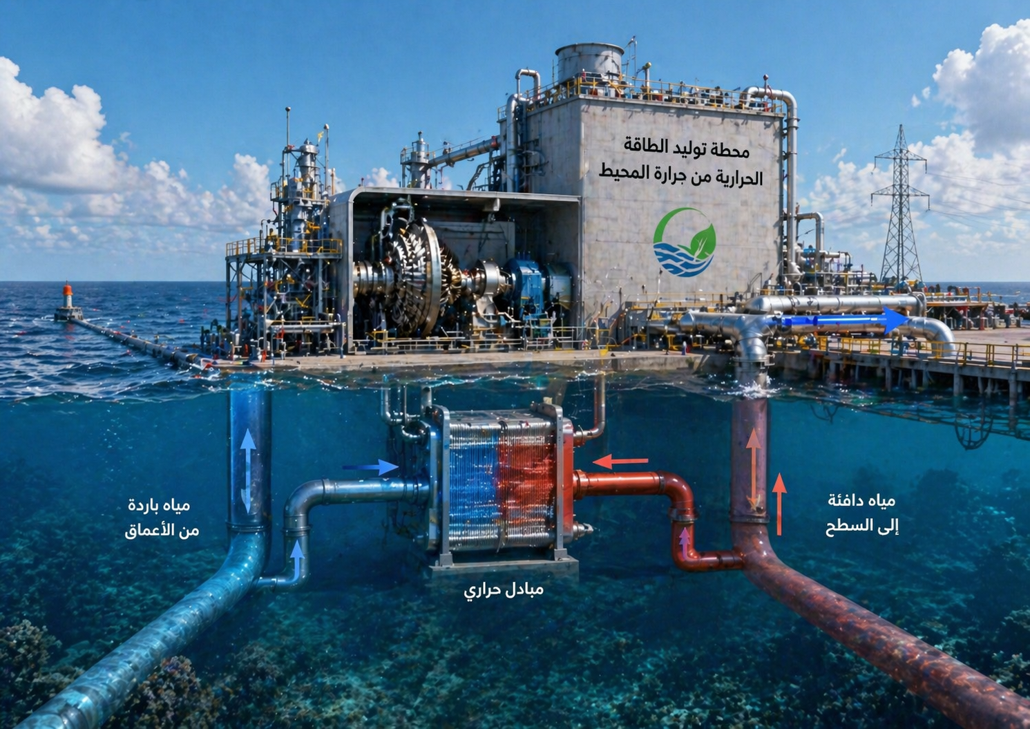 تعتمد تقنية تحويل الطاقة الحرارية للمحيطات على استغلال فرق درجة الحرارة الطبيعي بين المياه السطحية الدافئة ومياه أعماق البحار الباردة.