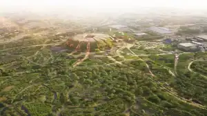 ويتميز التصميم المعماري للاستاد الرئيسي باحتوائه على جدران وأسقف خضراء تتجاوز مساحتها 96.500 متر مربع.