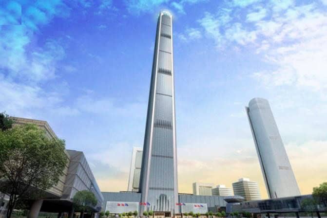 وبينما كان من المقرر أن يصبح هذا المبنى هو أطول ناطحة سحاب في الصين، فإن الأعمال بدأت فيه خلال 2008. حيث أقيم الهيكل الشاهق باستخدام أعمدة ضخمة للحماية من الرياح القوية والزلازل. فيما يعلو تصميمه الشبيه بعصا المشي ردهة على شكل ماسة. تضم مسبحًا ومنصة مشاهدة.
