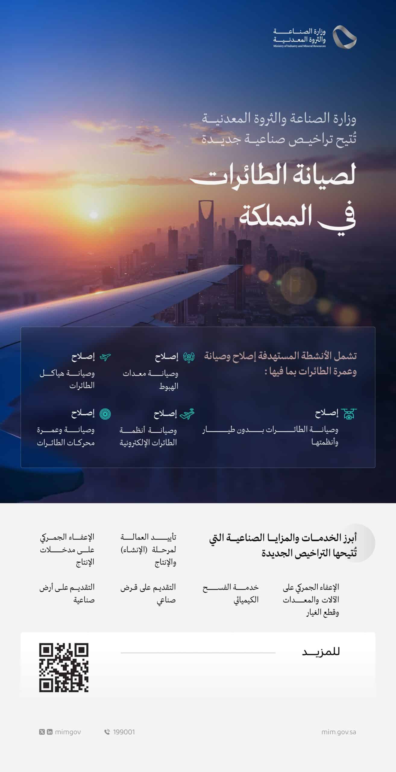 وأيضا أعلنت الوزارة عن تسليم أول ترخيص لصيانة الطائرات لشركة “الشرق الأوسط لمحركات الطائرات”. وترخيص آخر لشركة الخطوط السعودية لهندسة وصناعة الطيران.
