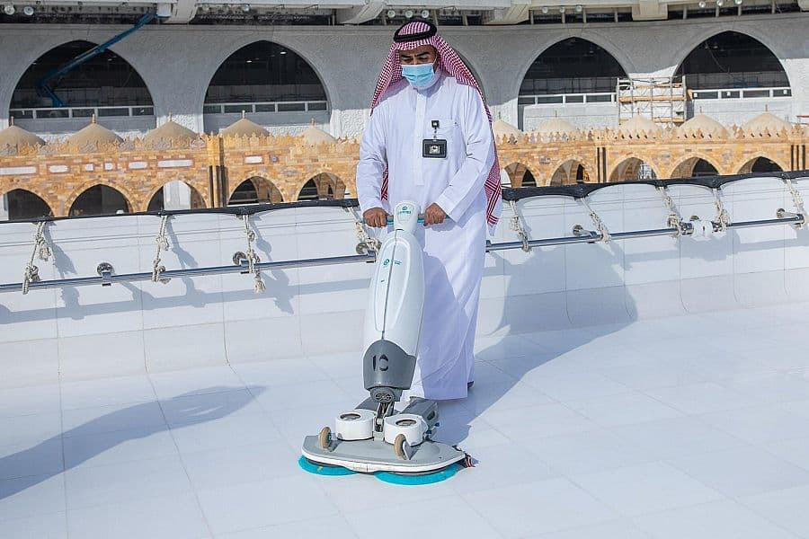 تقنيات حديثة ومواد خاصة لتعقيم وتطهير المسجد الحرام