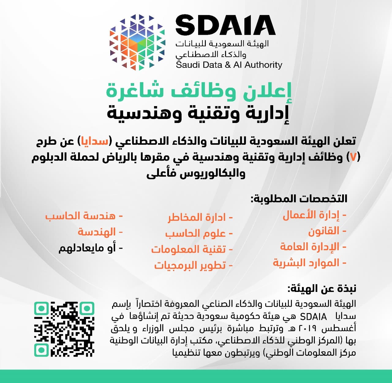 وبينت “سدايا” التخصصات المطلوبة وهي: