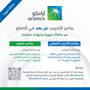 ويمكن للأشخاص الراغبين للتسجيل في برامج شركة أرامكو الضغط على هذا الرابط؛ حيث إن التقديم متاح حاليا.