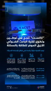 نجحت مدينة الملك عبدالعزيز للعلوم والتقنية “كاكست“، في توطين وتطوير تقنية الباعث الضوئي الأزرق، الذي يستخدم في تطبيقات الإضاءة الحديثة للمصابيح الموفرة للطاقة.