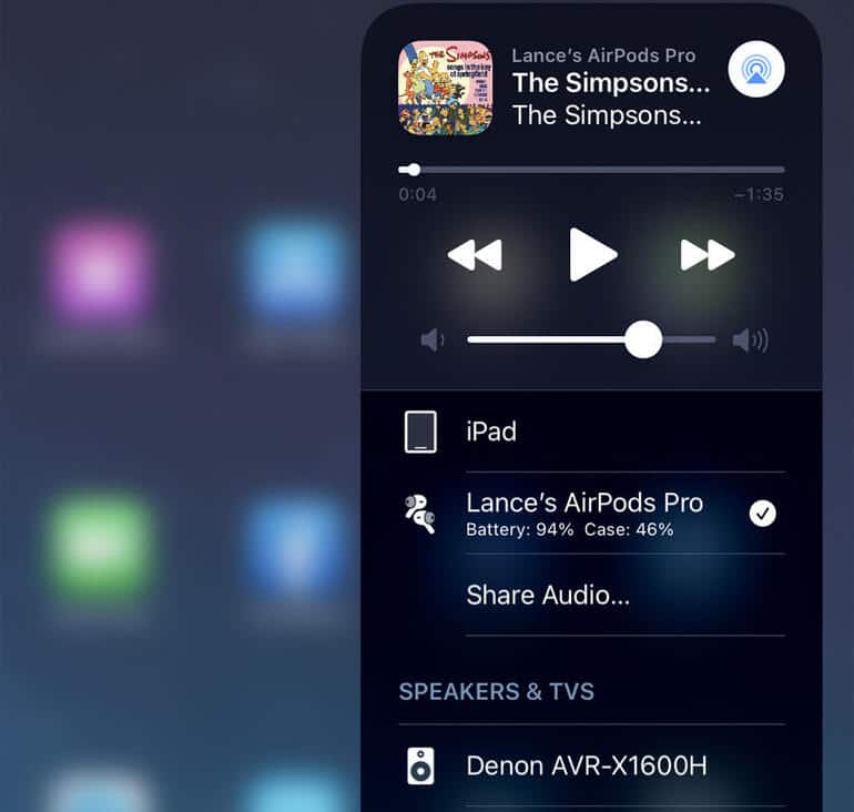 - لتأكيد ذلك اسحب لأسفل من أعلى يمين الشاشة لعرض مركز التحكم، ويجب أن يعرض التحكم في الصوت صورة AirPods.