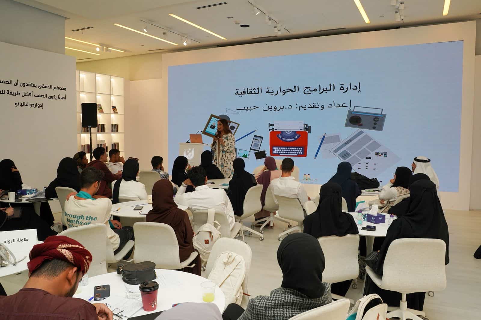 وفي جلسة شاملة للدكتور محمد الفريح، عرّف المشاركين فيها على عالم نشر الكتب، واستعرض معهم رحلة المخطوطة، من التقديم إلى الطباعة النهائية، مسلطًا الضوء على أدوار المحررين والوكلاء وفرق التسويق ودور النشر.